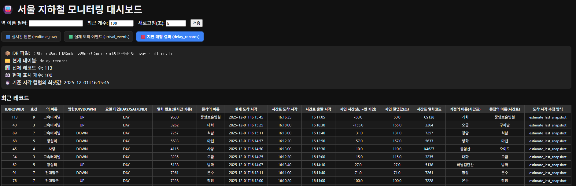 특정 지역의 역에 대한 실시간 지하철 정보앱